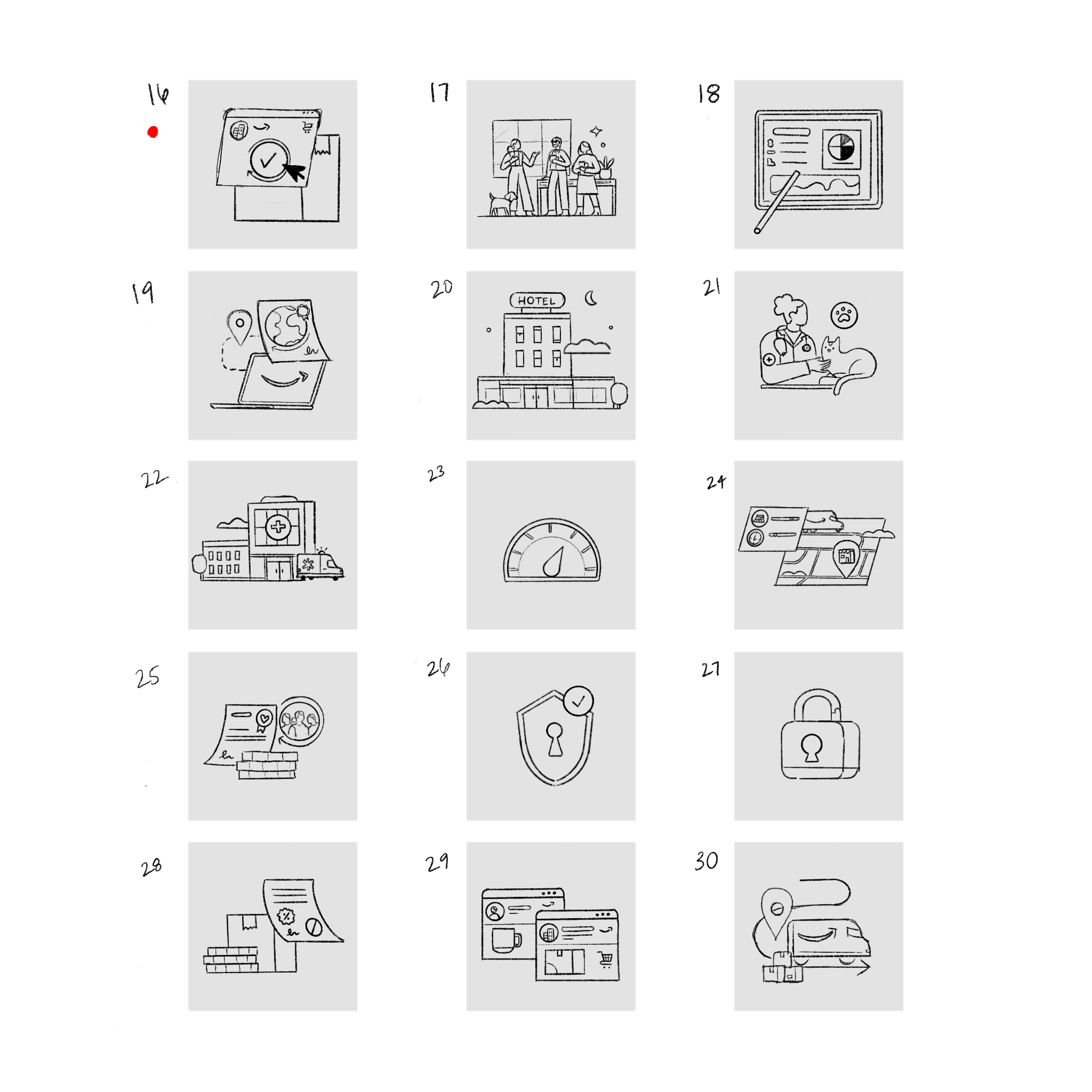 A few of my favorite of the illustrations! It was a good challenge to work with a limited color palette and keep the imagery fun but clearly representing different Amazon Business features.